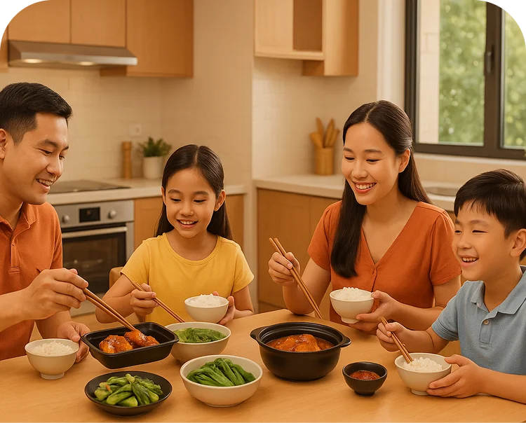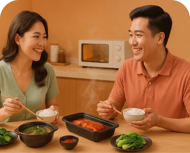 Những món ăn ngon chế biến kỳ công, trải qua nhiều công đoạn nấu nướng theo công thức truyền thống. Sau khi nấu chín hoàn toàn, món ăn được cấp đông nhanh, giữ trọn vị thơm ngon hài hòa khi dùng chung với cơm và dưỡng chất tự nhiên mà không cần sử dụng chất bảo quản. Món ăn nấu sẵn được đóng gói an toàn, tiết kiệm thời gian chuẩn bị, mang lại bữa ăn tiện lợi cho gia đình.