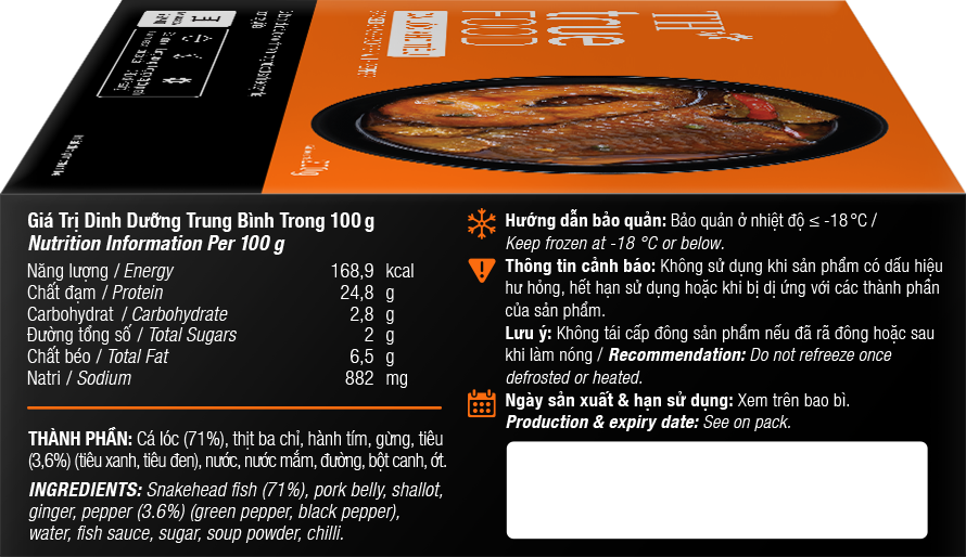 Sản phẩm có thể hâm nóng ngay không cần rã đông, giúp tiết kiệm thời gian chuẩn bị. Chỉ từ 5 phút là có ngay món ngon cho cả gia đình. Bao bì thiết kế tiện lợi, dễ dàng bảo quản và sử dụng.
